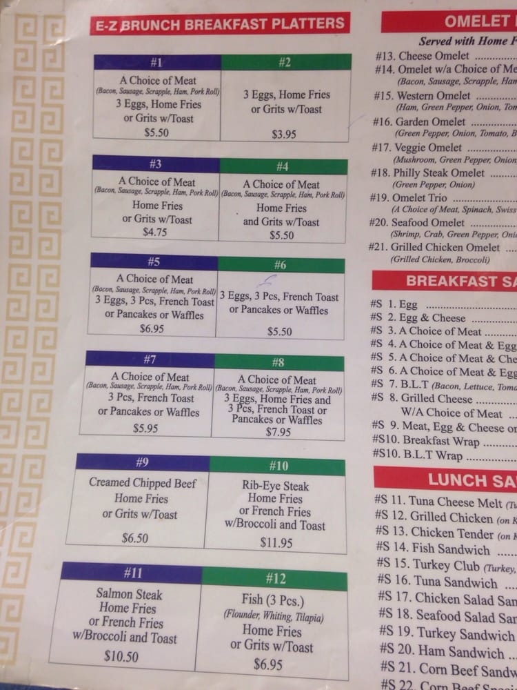 E-Z Brunch is your go-to spot for a satisfying breakfast or leisurely brunch in Frankford, Philadelphia. Situated on Pratt Street, this cozy restaurant offers a straightforward menu that highlights classic favorites and some unique twists. Whether you're in the mood for fluffy pancakes, savory omelets, or a hearty sandwich, you'll find something to satisfy your cravings.